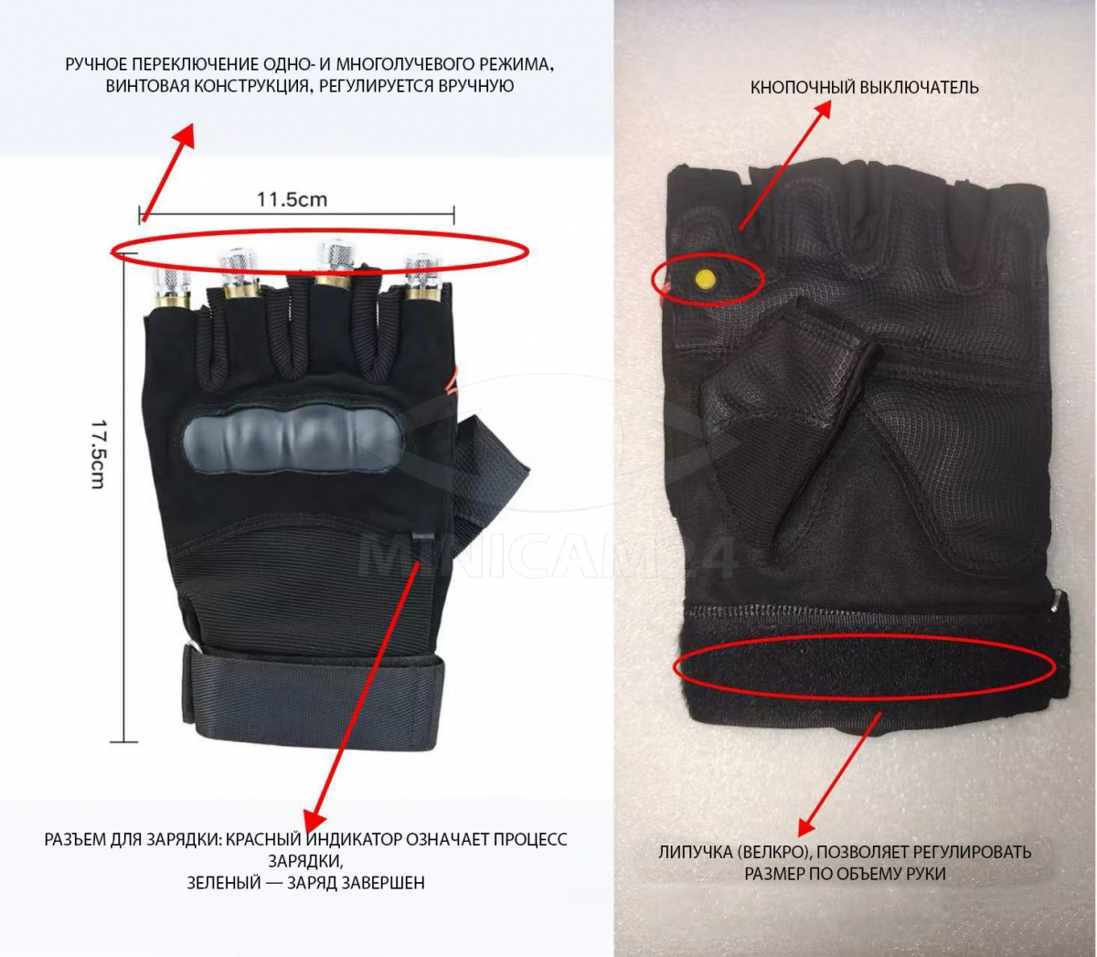 Зеленая лазерная перчатка Flare с 4 модулями, правая
