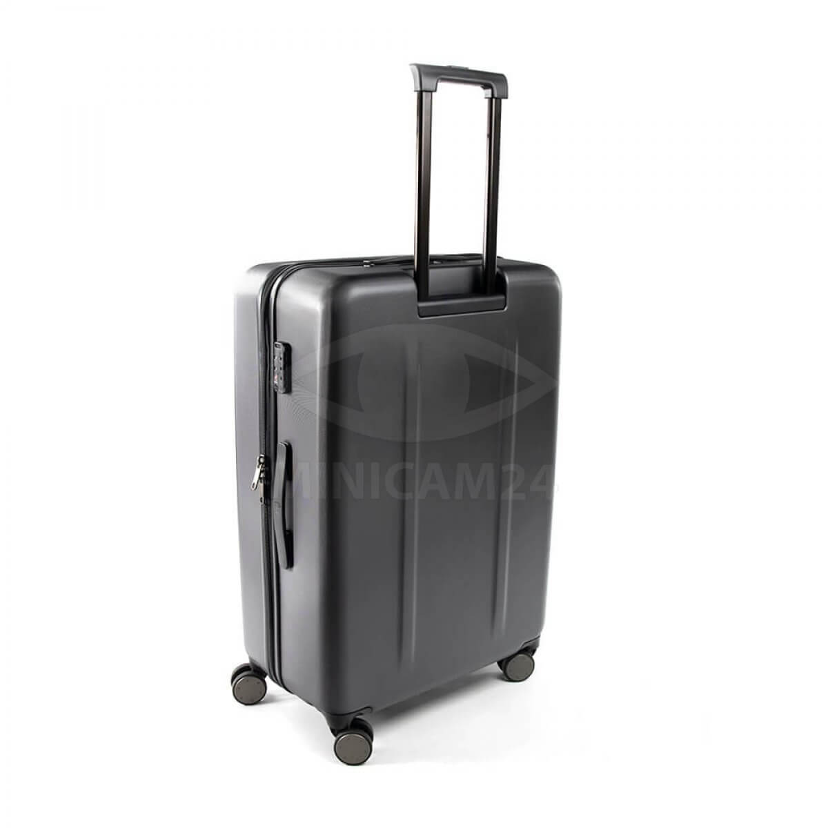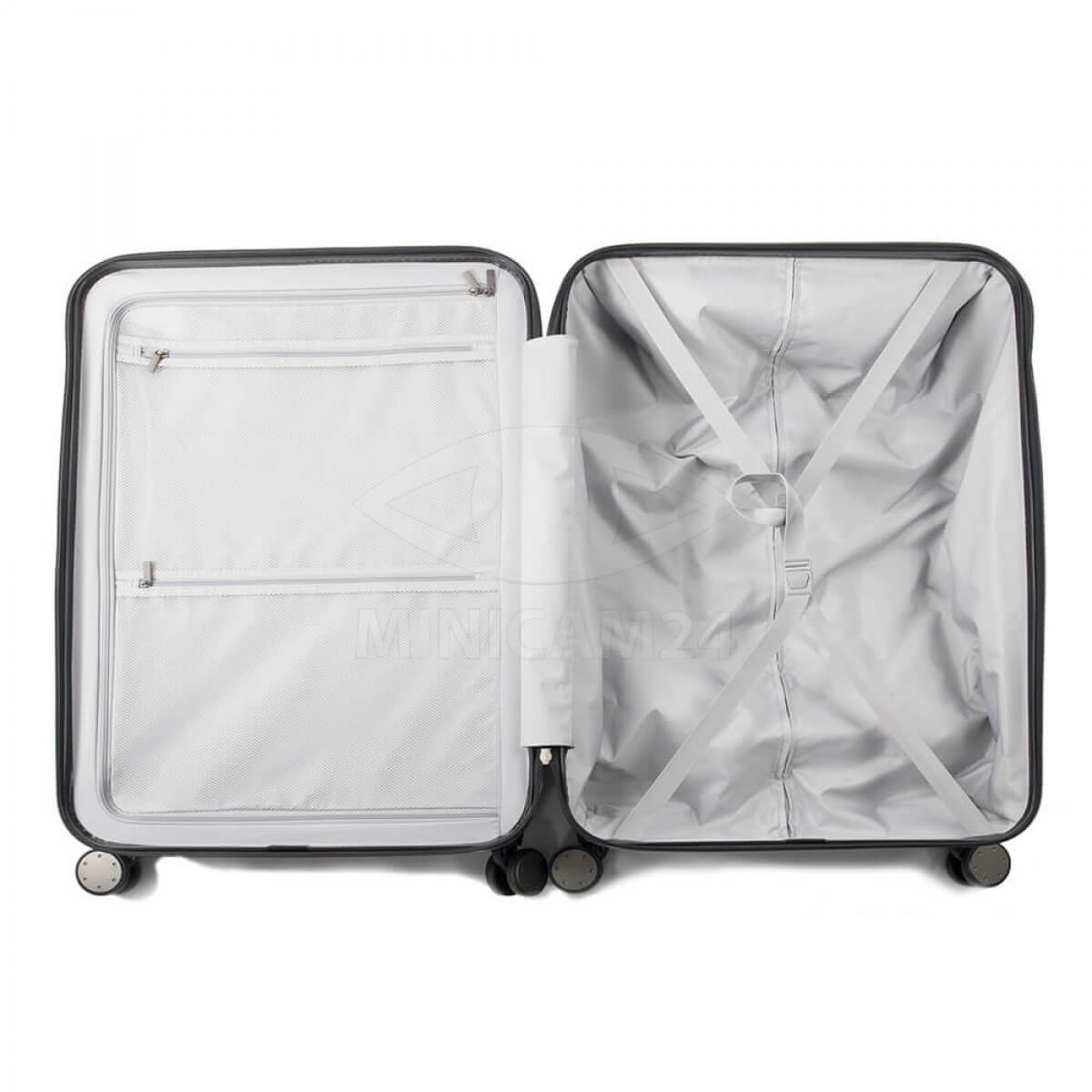Удобный и прочный чемодан для путешествий. Корпус чемодана состоит из двух половин, изготовленных из прочного поликарбоната. Внутренняя поверхность обтянута полиэстером. Чемодан имеет удобную складывающуюся ручку и четыре колесика для перемещения по ровному полу и ручку для переноски на весу. Застежки типа «Молния» защищены кодовым замком с фиксацией бегунков. Объем чемодана 36 литров.
