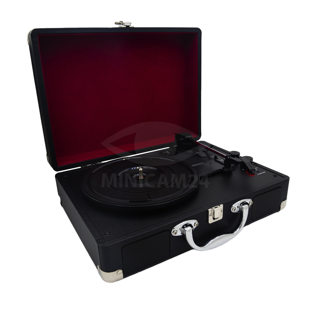 Виниловый проигрыватель пластинок Caro Black (Bluetooth) - портативное устройство, которое в сложенном виде похоже на дипломат. lp проигрыватель оснащен ручкой для удобства транспортировки. Винтажная аудиотехника помимо Bluetooth интерфейса оснащена разъемом 3,5 мм. Пользователь может вручную менять скорость вращения пластинок. Поддерживается установка винила диаметром 18, 25 и 30 см.